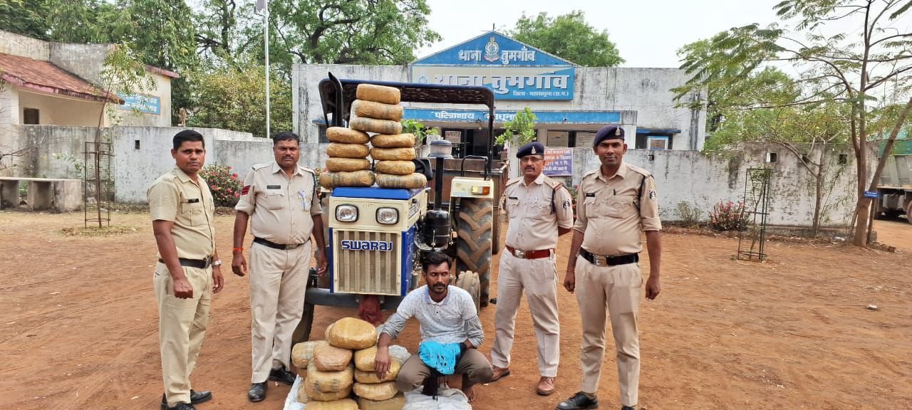 ट्रेक्टर के गुप्त चेंबर से 65 किलो गांजा परिवहन करते आरोपी पकड़ाया